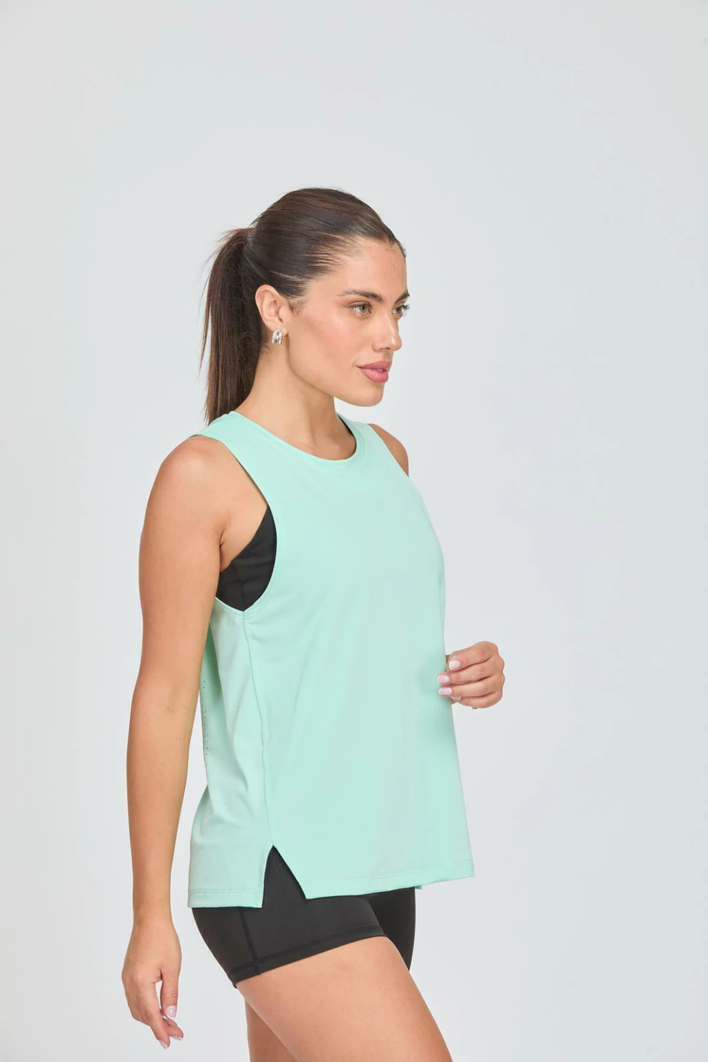 Los tajitos laterales aportan un detalle de diseño único, que además facilita la movilidad y realza tu figura con un toque moderno y sofisticado. Ideal para quienes buscan una musculosa que destaque por su calidad y diseño innovador.