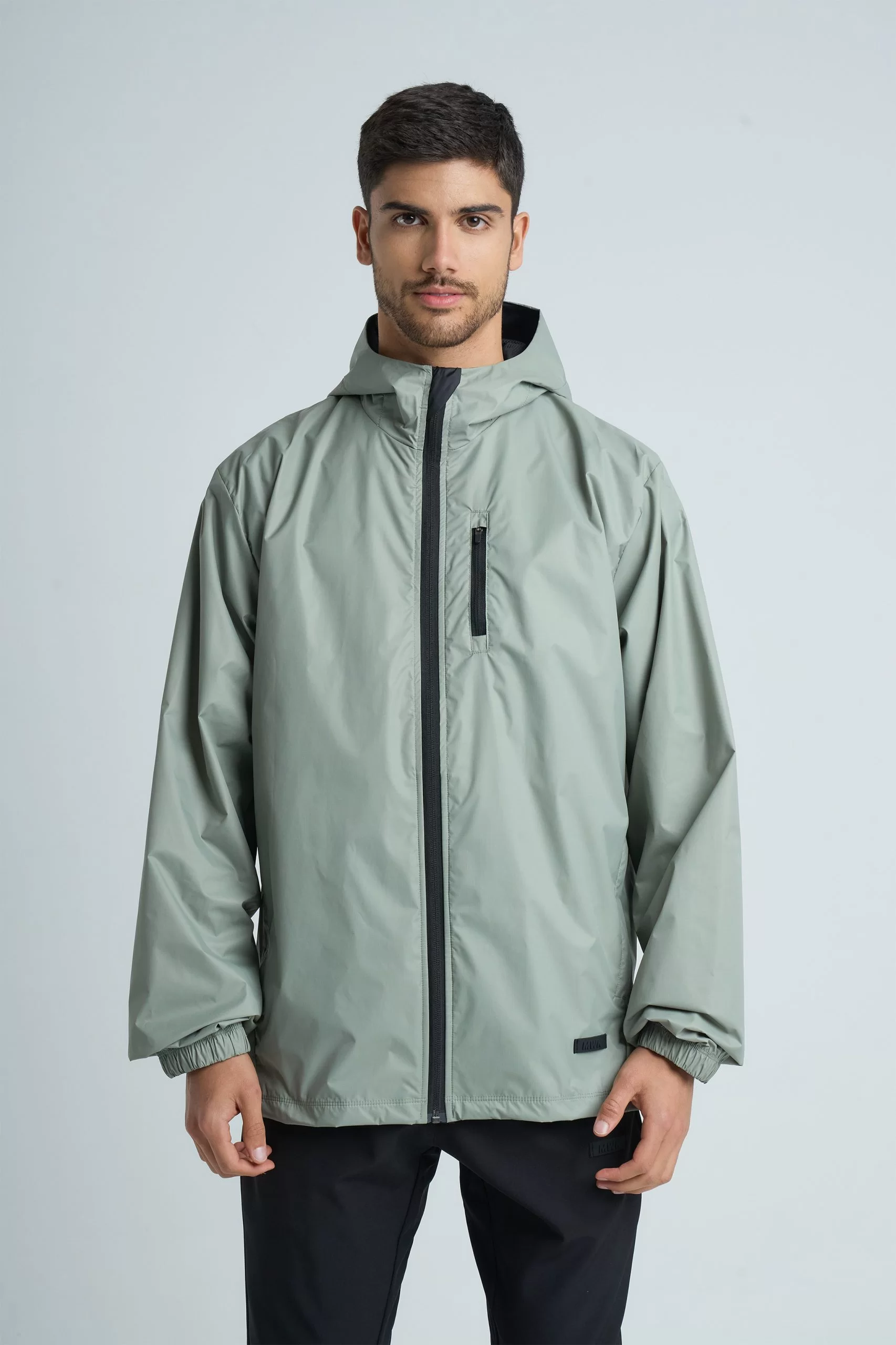 Campera de running rompeviento, confeccionada en textil semi mate con recubrimiento interno impermeable, soporta 2000mm de columna de agua. Con diseño optimizado para ser altamente funcional, posee vista interna en cierre, amplios bolsillos laterales y superior con cierre, capucha y ajuste de elástico en puños. Posee bolsa interna para autoguardado. Textil no transpirable.