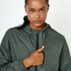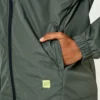 Campera de running rompeviento, confeccionada en textil semi mate con recubrimiento interno impermeable, soporta 2000mm de columna de agua. Con diseño optimizado para