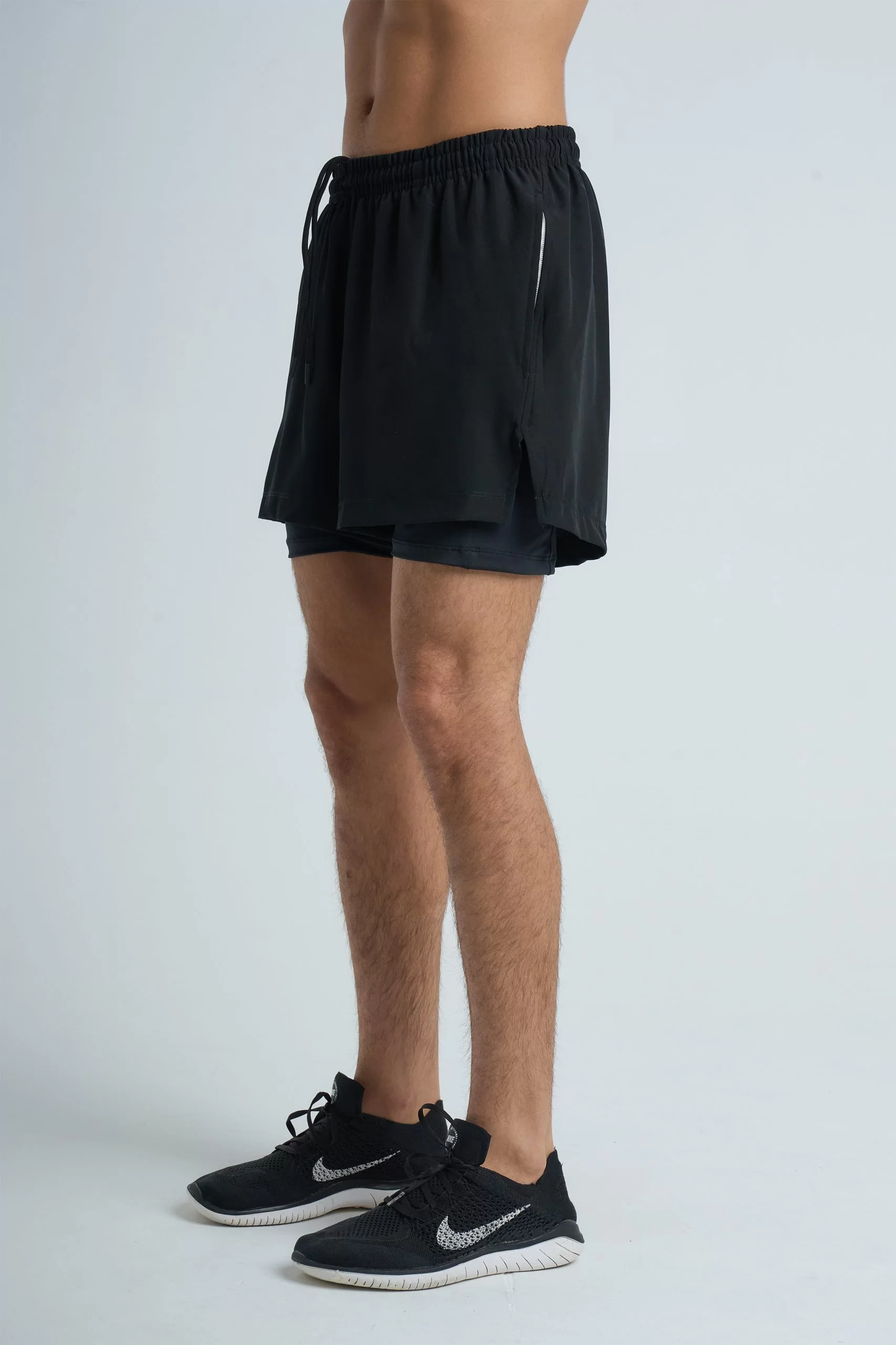 Short clásico de running con textil Microfibra plana elastizada liviana, tiene combinaciones en microfibra stretch. Prenda diseñada para ser altamente funcional, tiene un short interno con bolsillo para garantizar el libre movimiento, sus bolsillos lo hacen ideal para deporte de alto impacto. Detalles reflex.