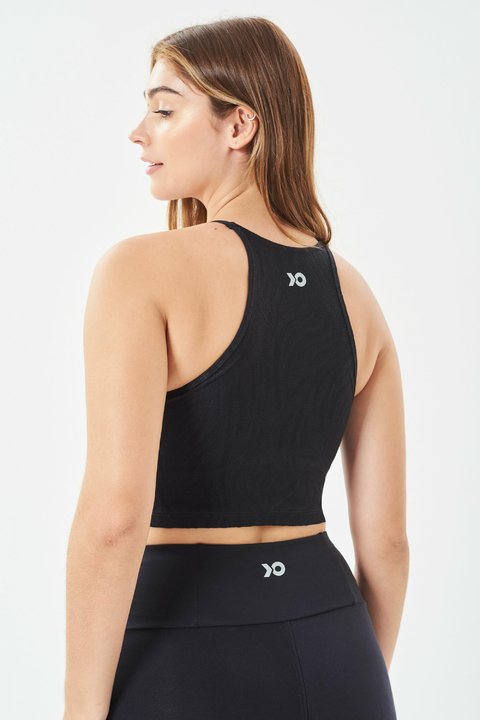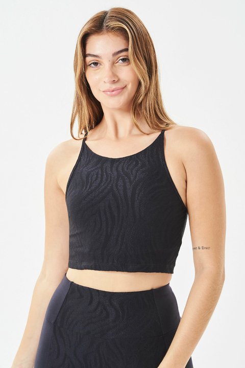 Top con sostén interno. Sujeción media. Línea larga. Calidad Lycra Sport®. Breteles finos, brindan comodidad durante tu entrenamiento. Tejido jaquard texturizado, completa tanto tu look de entrenamiento, como tu actividad athleisure preferida.