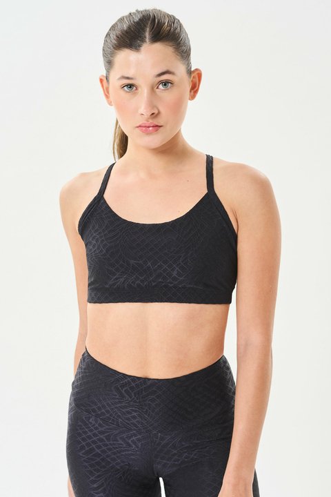 Top con sujeción media. Línea media. Breteles finos que se fusionan con espalda competición innovadora, brindan el ajuste ideal para tus entrenamientos. Calidad Lycra Sport®. Tejido jaquard texturizado, completa tanto tu look de entrenamiento, como tu actividad athleisure preferida.